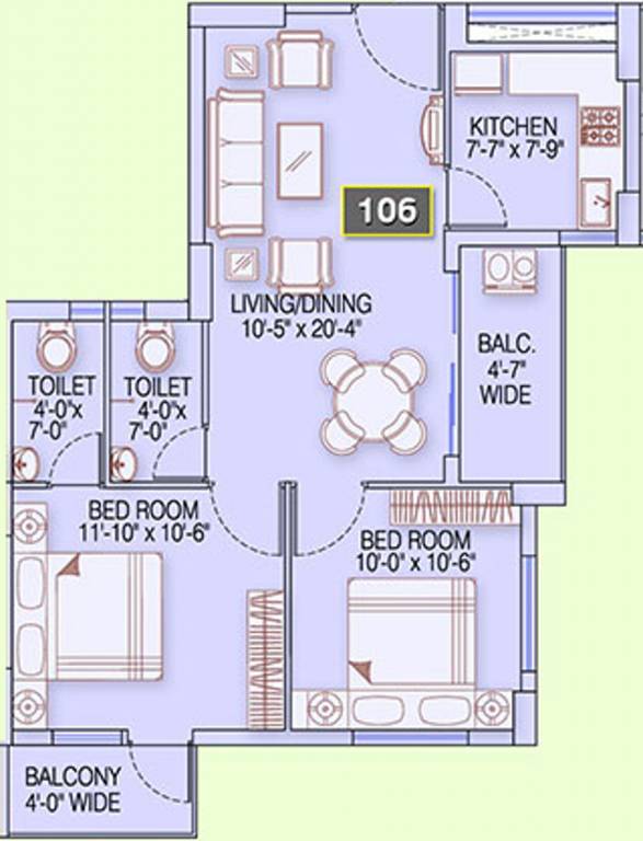 Floor Plans of 2BHK(893sq.ft.)
