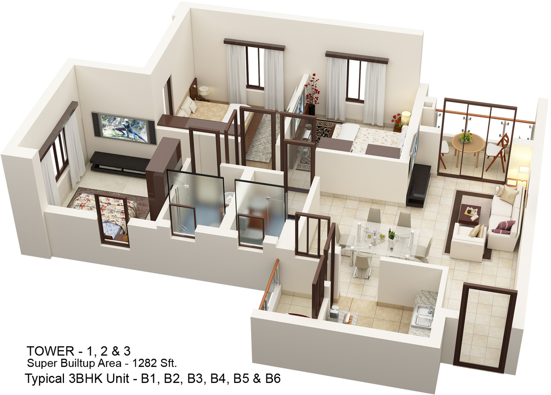 (3BHK)1282sq.ft