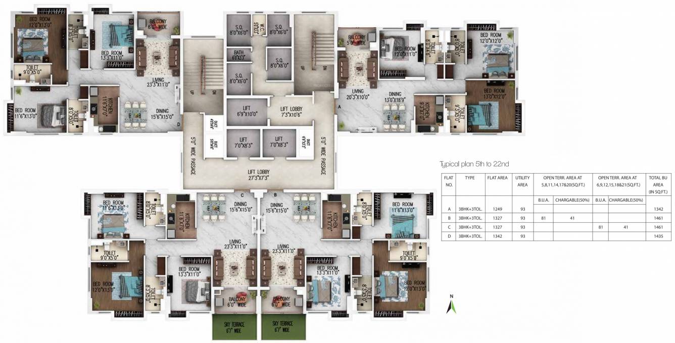 Floor Plans of 5th-22nd Floor