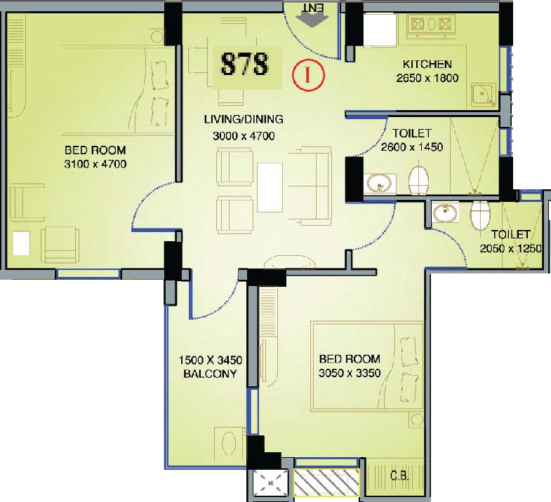 Floor Plans of 878 SQ.FT.