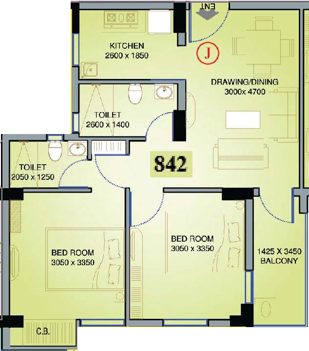 Floor Plans of 842 SQ.FT.