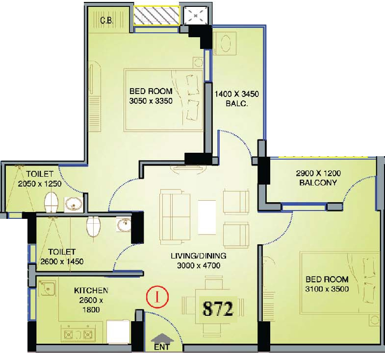 Floor Plans of 872 SQ.FT.