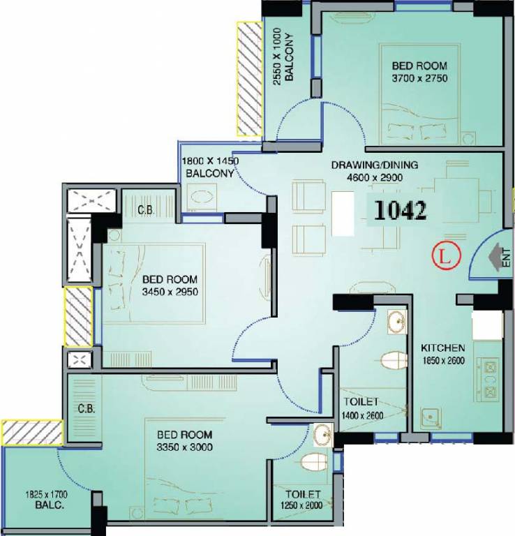 Floor Plans of 1042 SQ.FT.