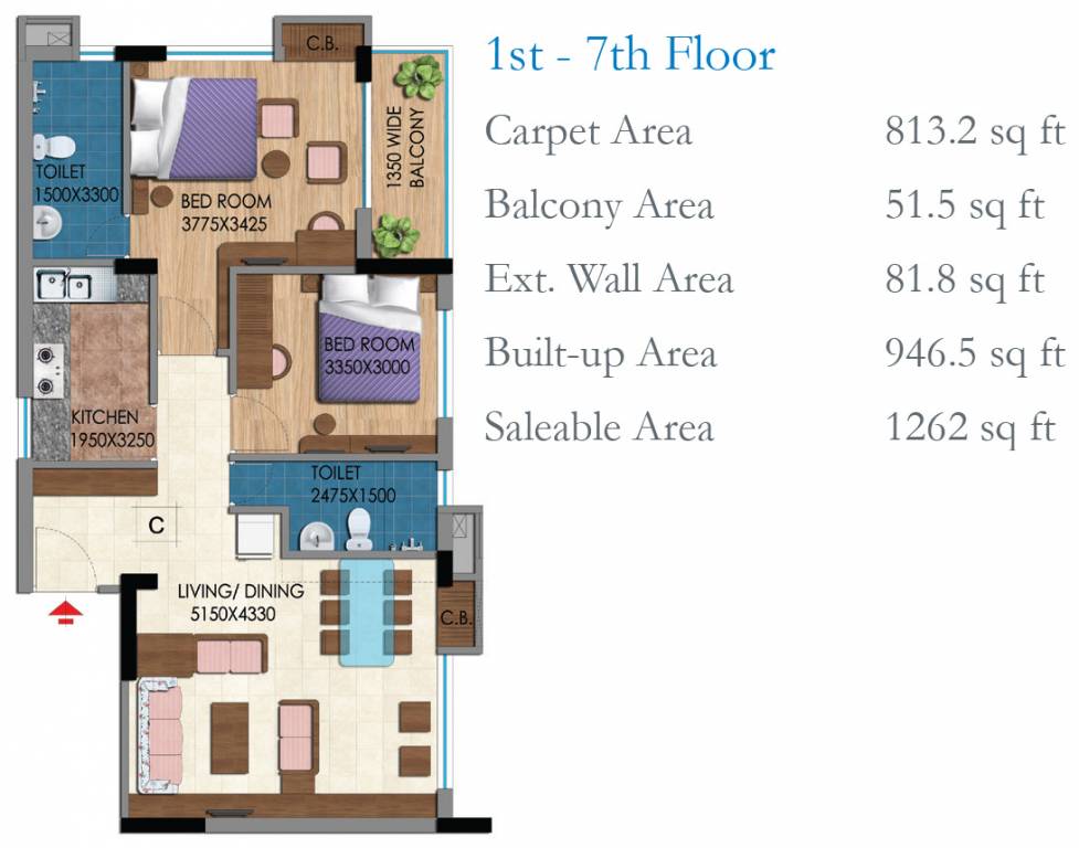 Floor Plans of 1ST-7TH(1262SQ.FT.)