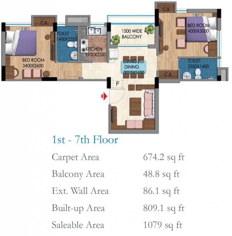 Floor Plans of 1ST-7TH(1079SQ.FT)