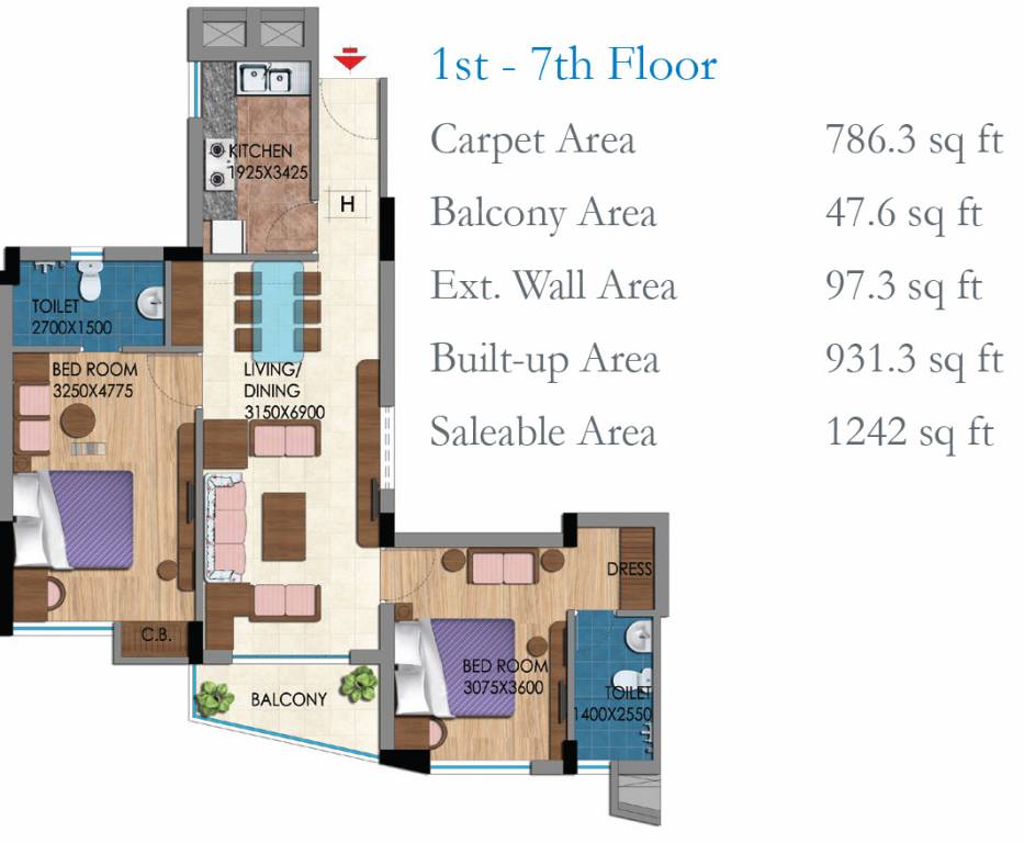 Floor Plans of 1ST-7TH(1242 SQ.FT.)