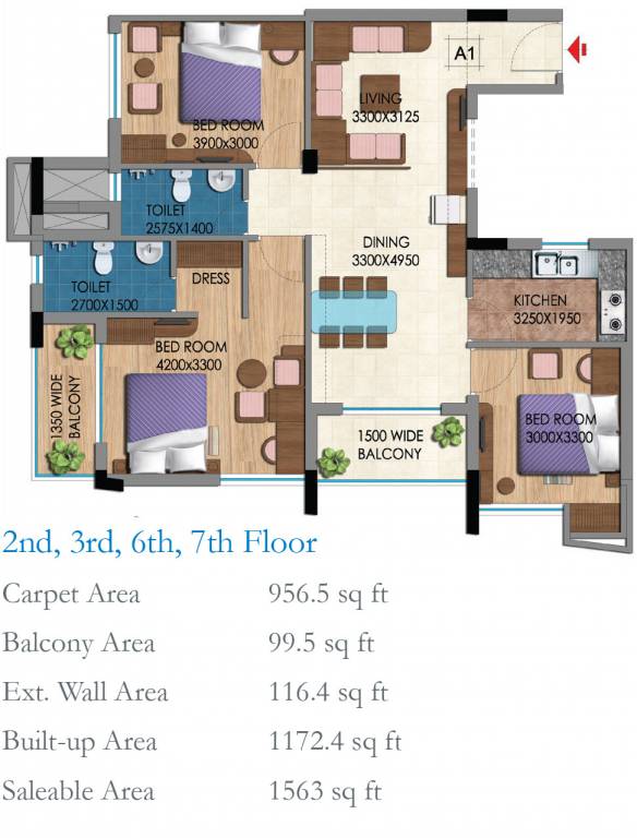 Floor Plans of F-2,3,6,7(1563SQ.FT)