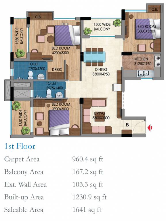 Floor Plans of 1ST FLOOR(1641SQ.FT.