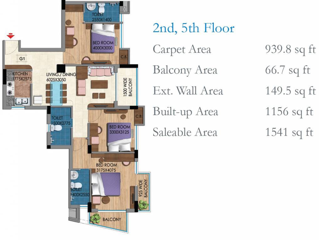 Floor Plans of 2ND,5TH(1541 SQ.FT.)