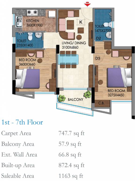 Floor Plans of 1ST-7TH(1163 SQ.FT.)