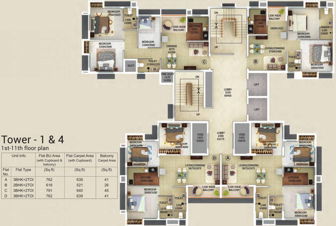 3BHK(762sq.ft.)