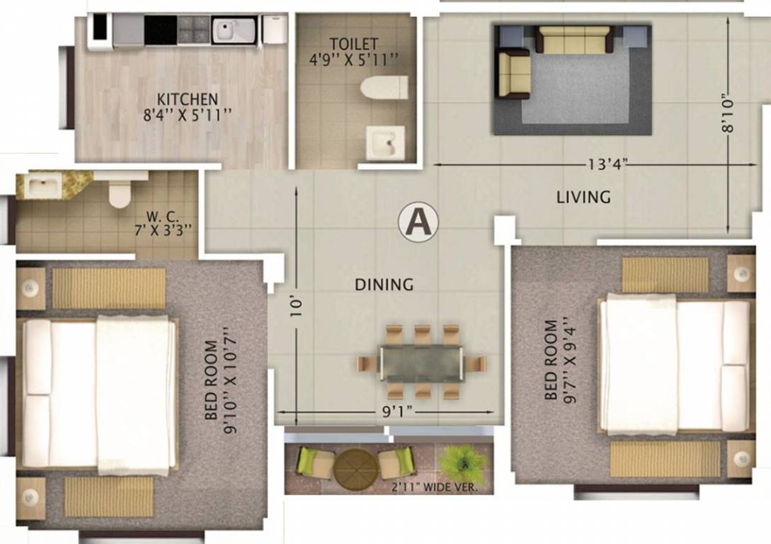 2BHK(865sq.ft.)