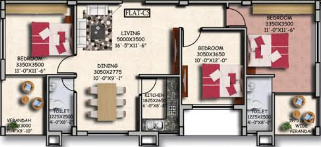 3BHK(1265sq.ft.)
