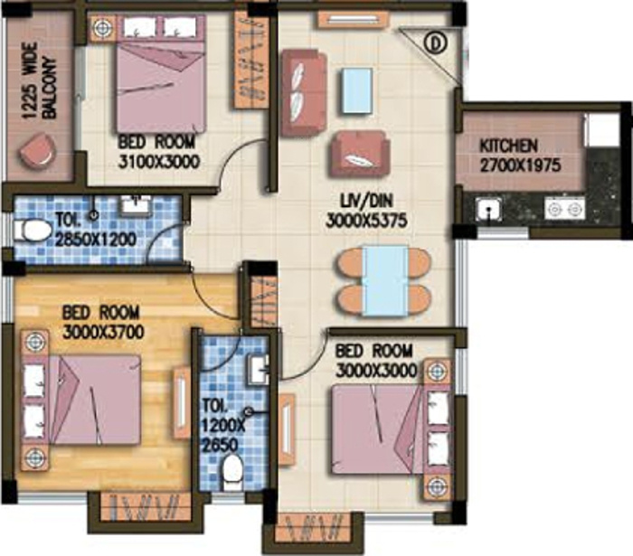 3BHK(1199sq.ft.)