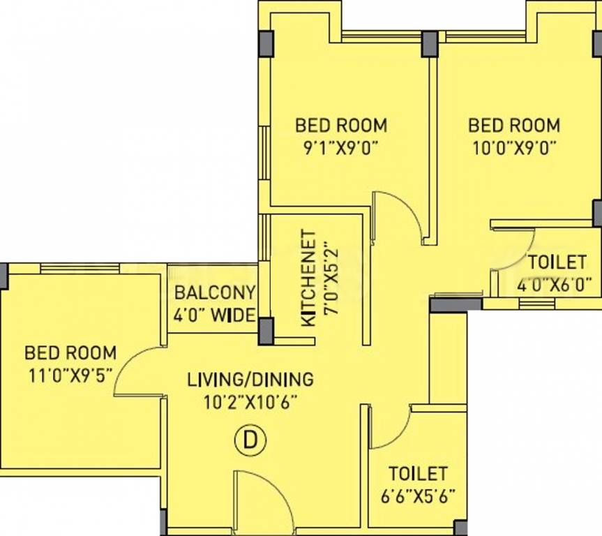 Floor Plans of 3BHK(973sq.ft.)